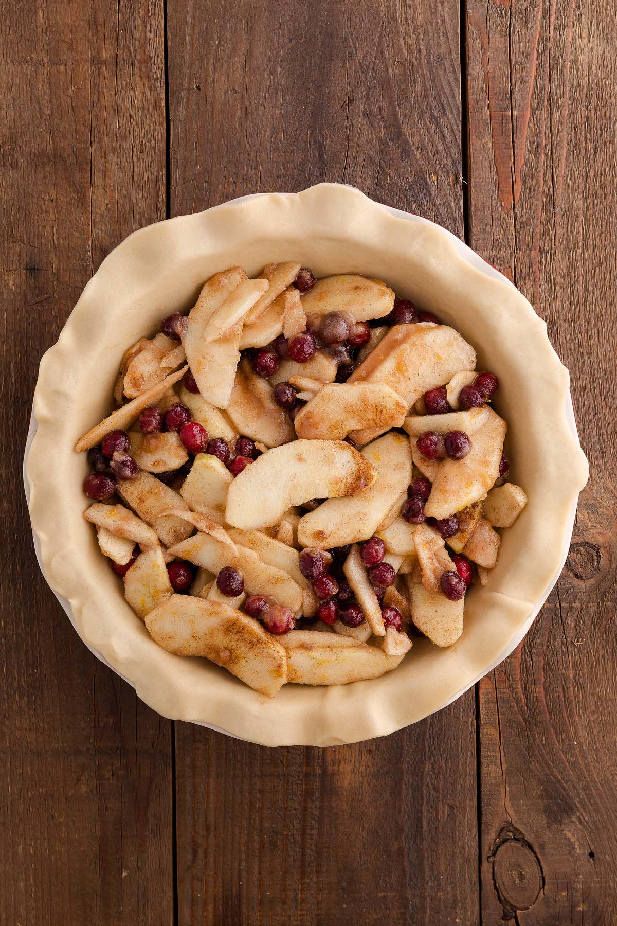 Cranberries: Add bright color and tangy flavor to balance the apples, making a sweet tart filling for this fruit pie. You can use frozen or fresh cranberries. If using frozen cranberries, you can use them straight from the freezer without thawing.