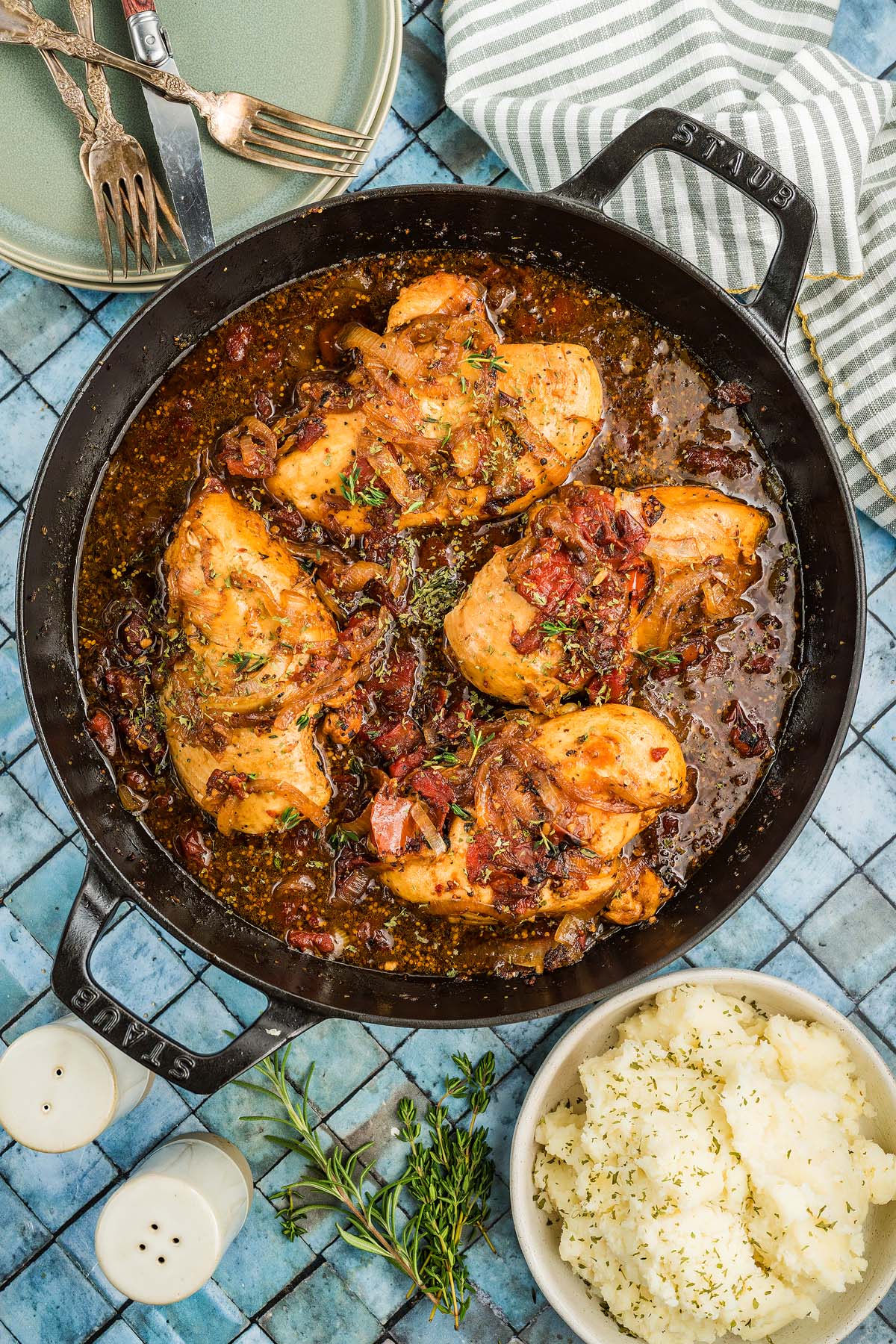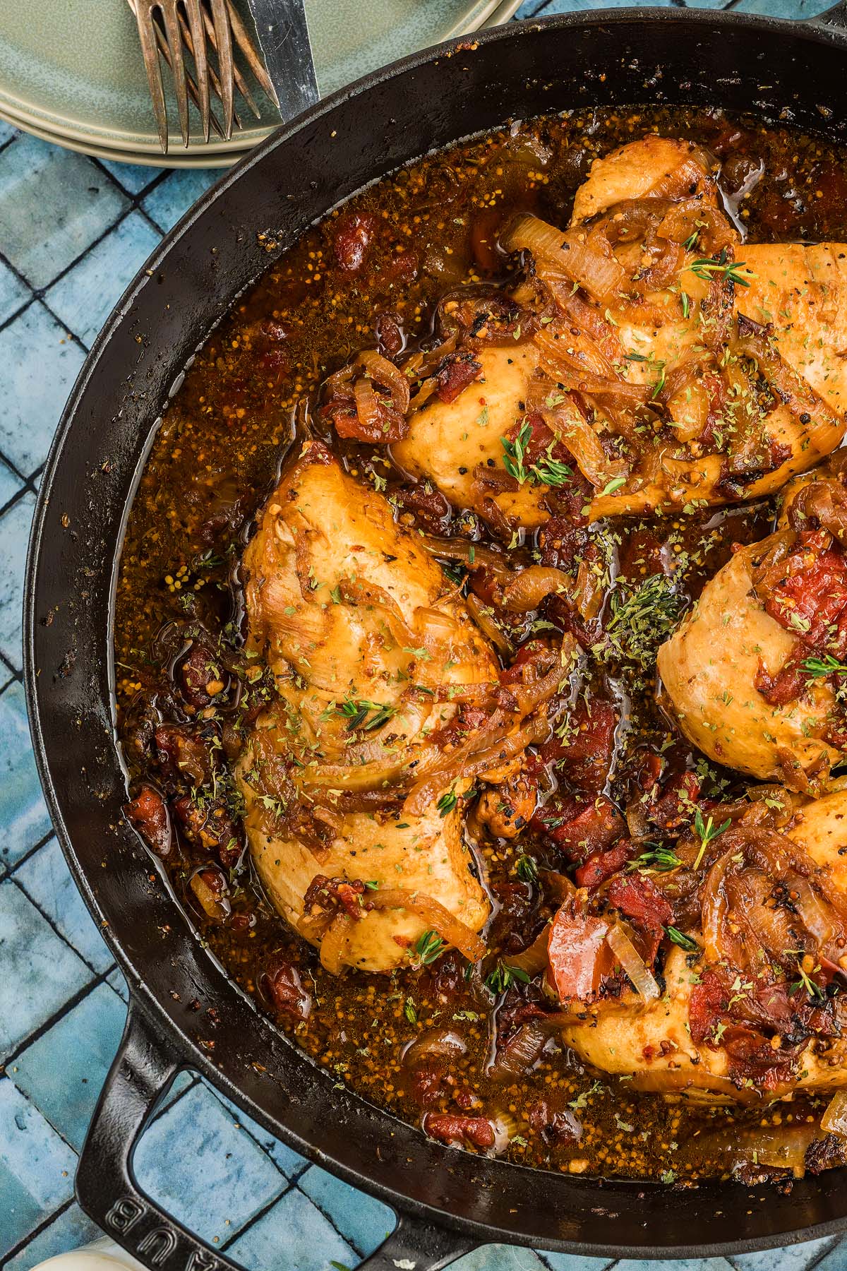 - Return chicken to the pan, nestling it into the sauce, and spoon sauce over chicken.