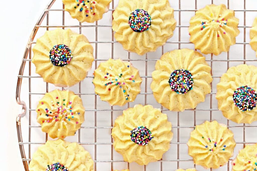 These delicious Italian Butter Cookies, provide a delightful blend of a crispy outer layer and a soft, melt-in-your-mouth texture. The dough, which is smooth and indulgent with butter, can be effortlessly piped, used with a cookie press, or formed into small balls for baking.