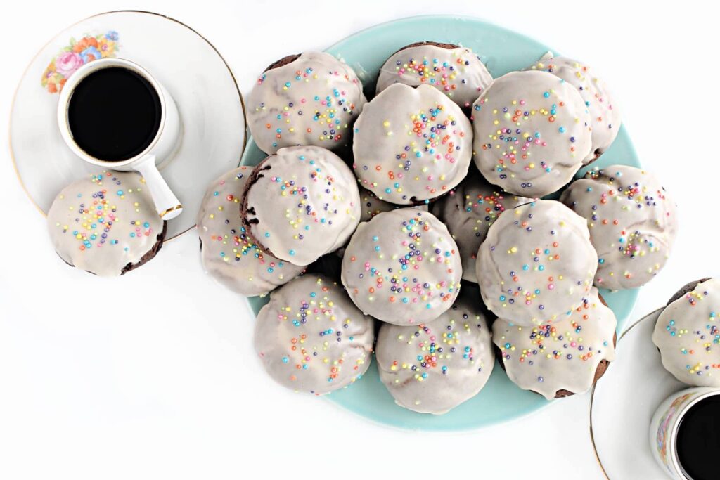 These Italian Chocolate Cookies are soft and have a cake-like texture. They are infused with chopped chocolate pieces and a hint of cinnamon, making them a truly irresistible treat. To enhance their indulgence, these Italian cookies are coated with a crispy layer of vanilla icing on top.