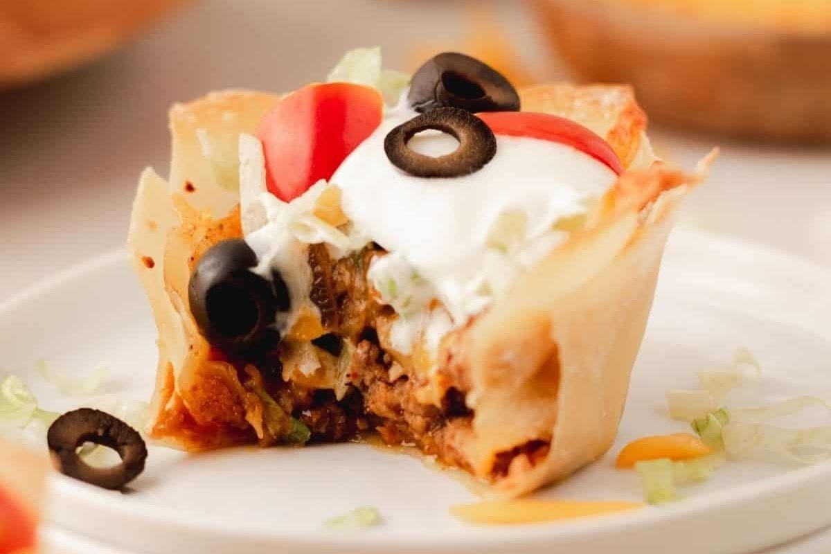 These super fun Crunchy Wonton Taco Cups are easy to make and add a fun twist to taco night. They are made with a crispy wonton shell, layered with refried beans and ground beef taco meat. This fun finger food is the perfect appetizer to share with a crowd, or great to serve for a taco Tuesday dinner too!