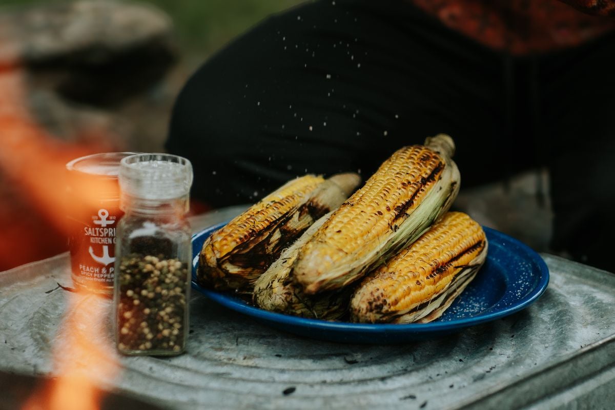 Bring some smoky sweetness to your next cookout with this campfire grilled corn recipe. Fresh corn cobs are cooked over open flames until perfectly charred, then brushed with a sweet and tangy pepper jelly glaze. A sprinkle of green onions finishes each cob with a pop of freshness. This recipe is quick, easy and full of bold flavor, making it a great addition to any camping trip or fun backyard meal.