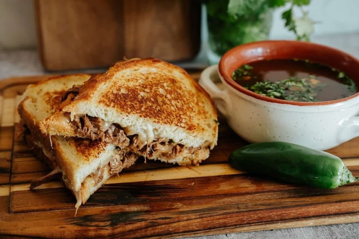 Savor the fusion of Birria de Res and gooey cheese in this irresistible Birria Grilled Cheese Sandwich! A delicious twist on a classic.