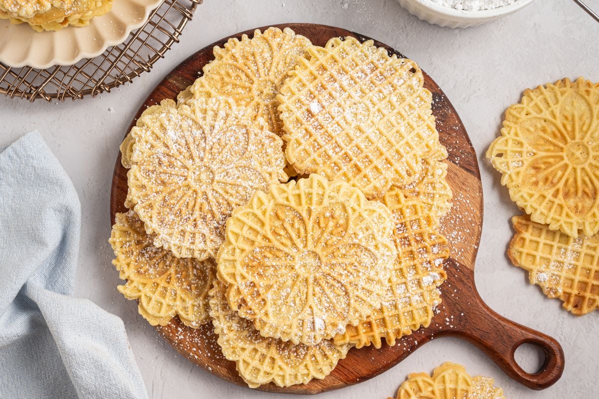 Freeze: Freeze these thin Italian waffle cookies in a sealed container for up to 3 months.