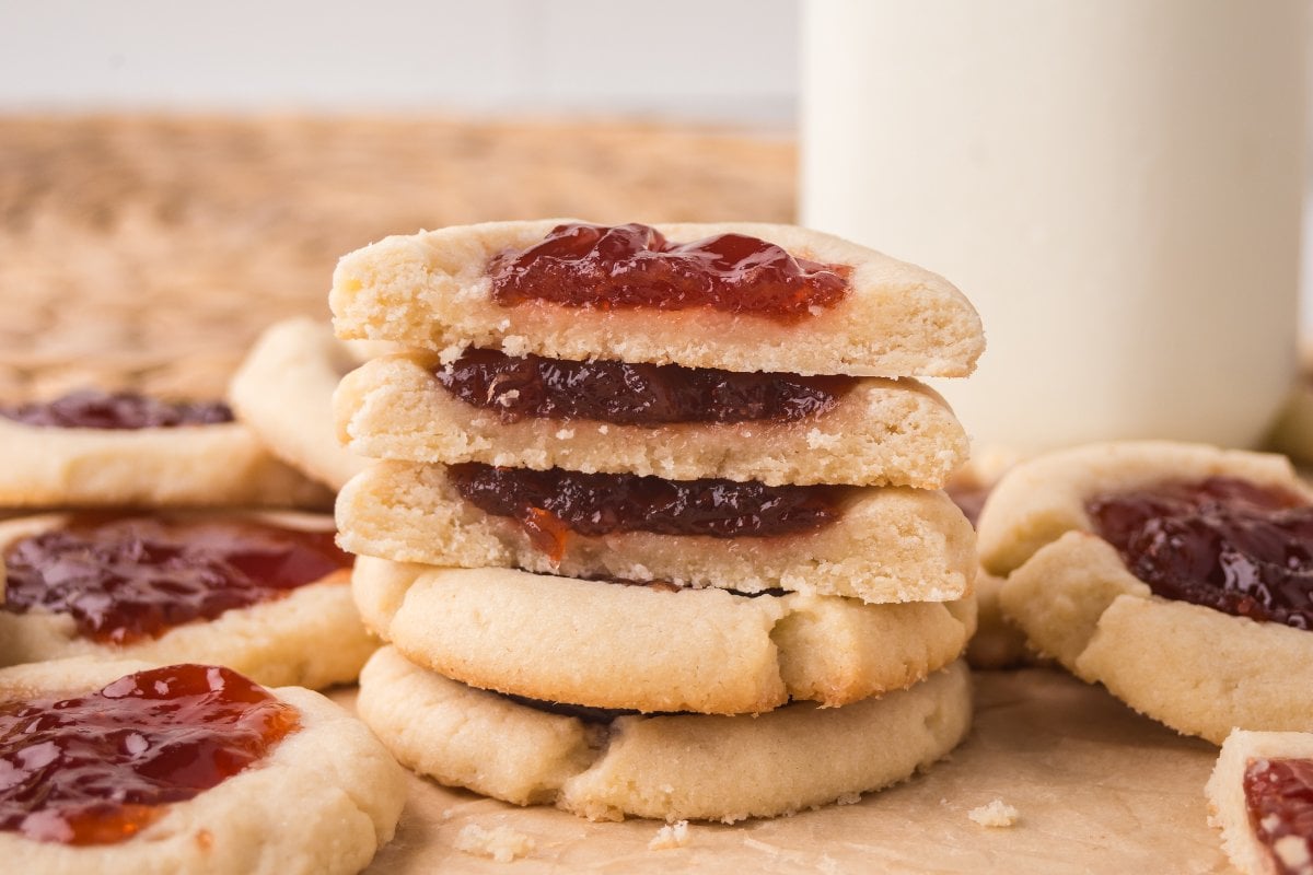 Jam thumbprint cookies have a buttery dough and jam center and bake into soft, golden treats everyone enjoys. You can have fun trying different jams for the filling.