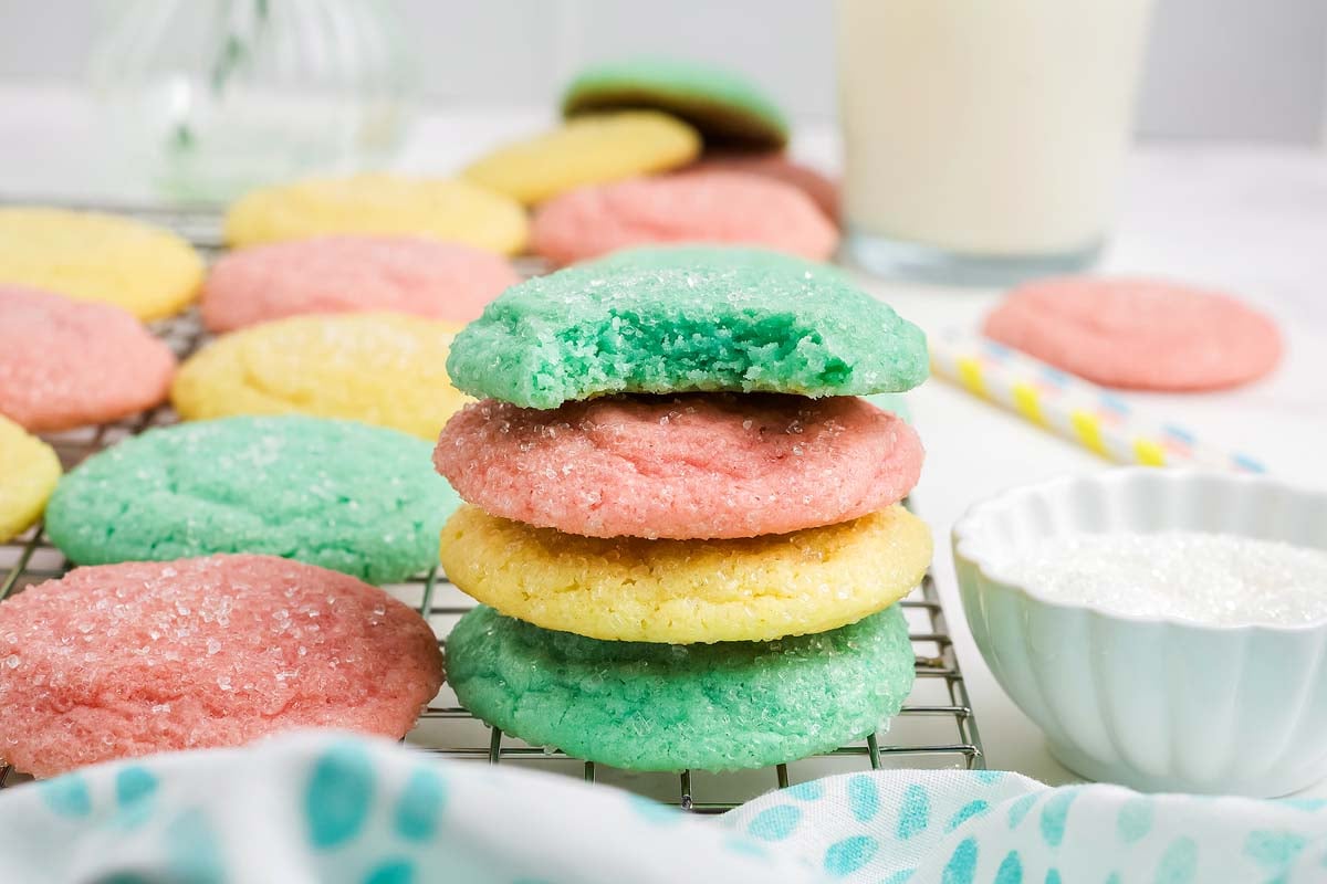 Extra color: Add food coloring for a more vivid color. This isn’t necessary though, as the cookies will be colorful already from the Kool-Aid mix. When I did this, the color came out darker instead of the pretty pastel shades.