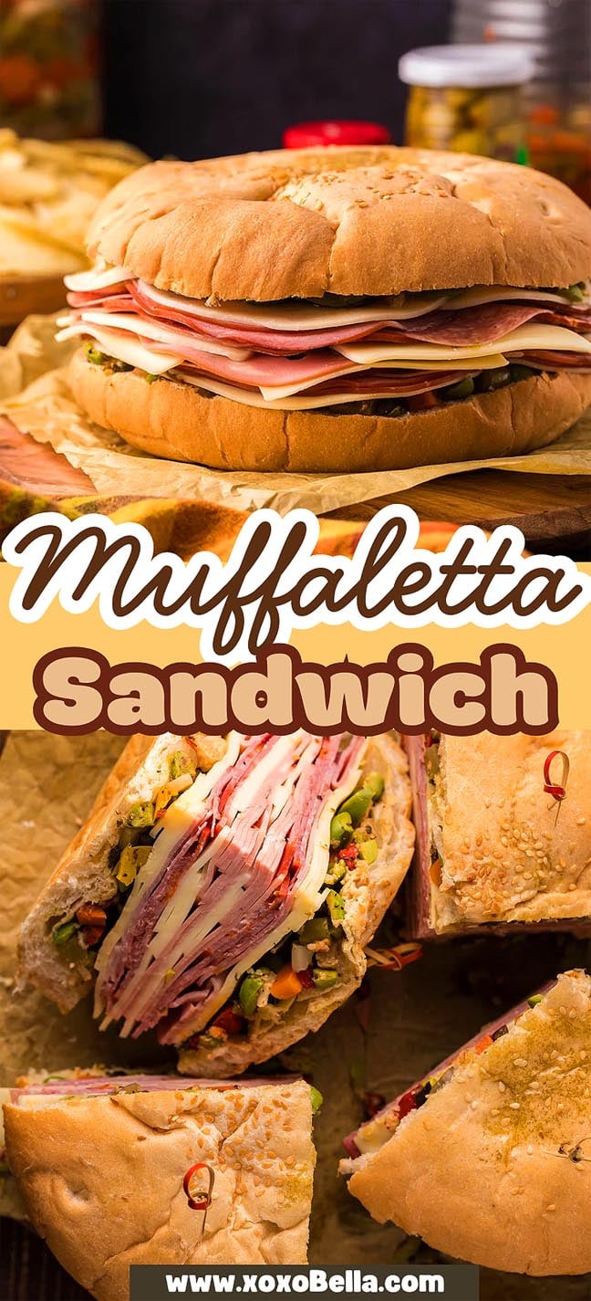 The muffaletta olive salad sandwich, originally invented by Salvatore Lupo at Central Grocery in the French Quarter of New Orleans, is one of the tastiest sandwiches you can make. A delicious muffaletta sandwich boasts cold cuts, cheese, pickled vegetables, and olives, for a fantastic flavor, and it’s pressed overnight so all the incredible flavors can meld.