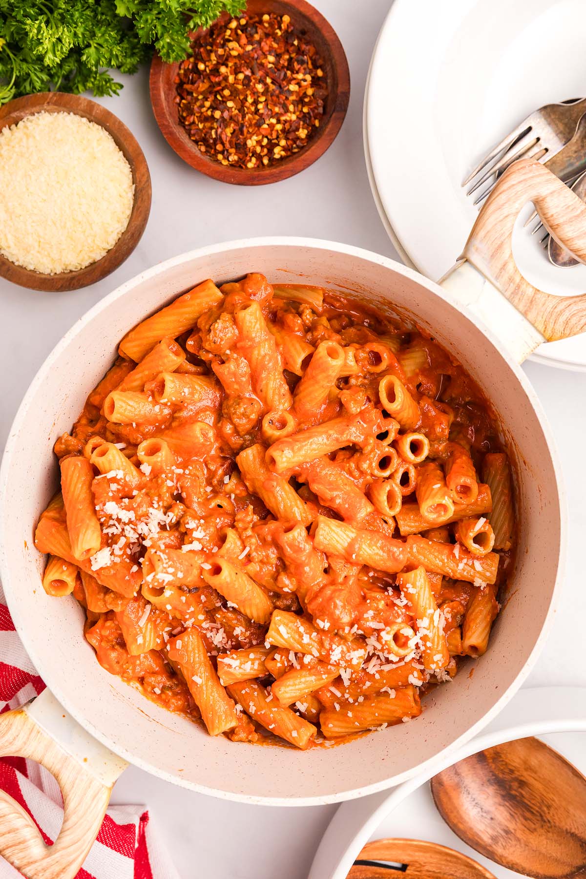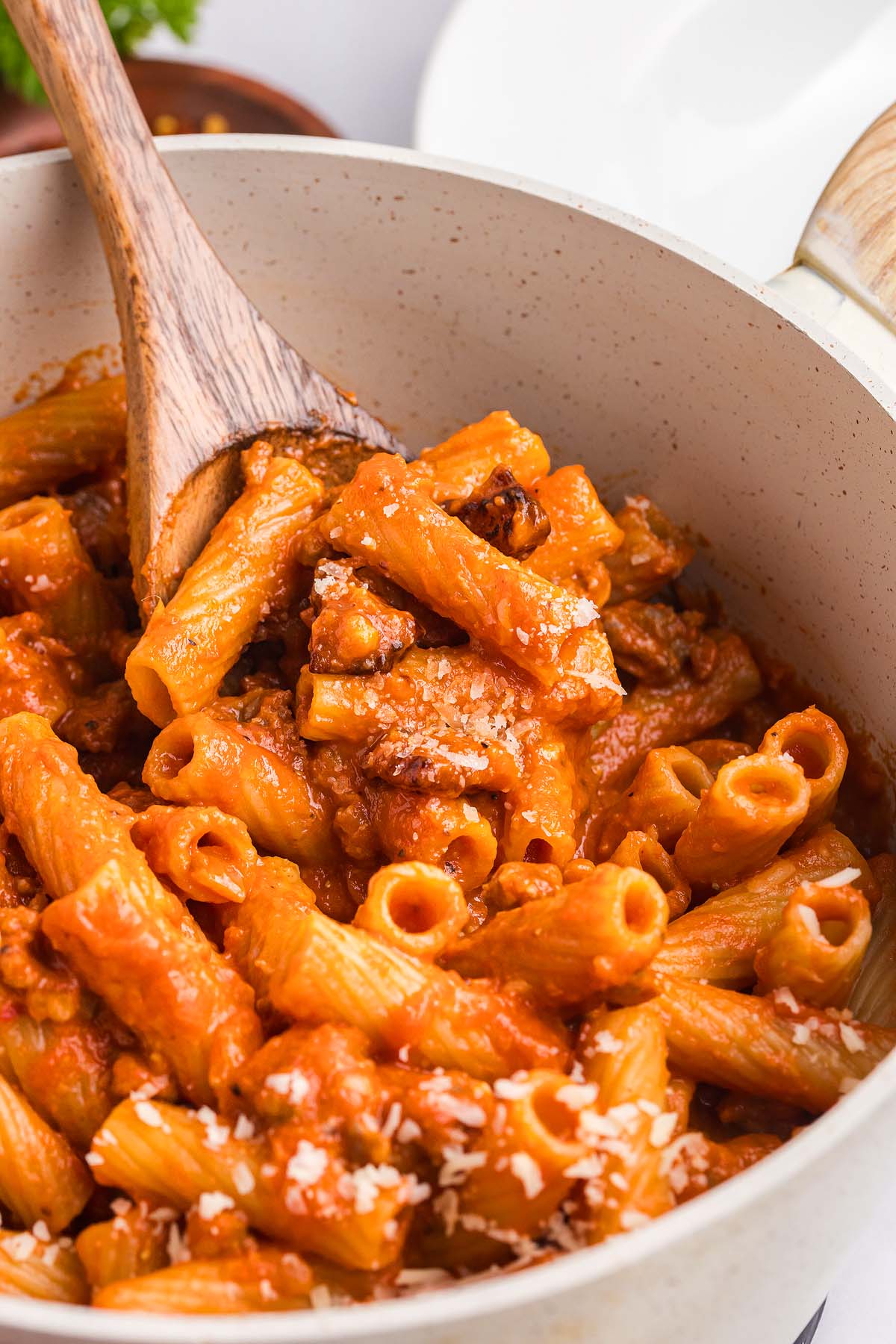 Store: Keep leftover sausage rigatoni in an airtight container in the refrigerator and eat within 3 days.