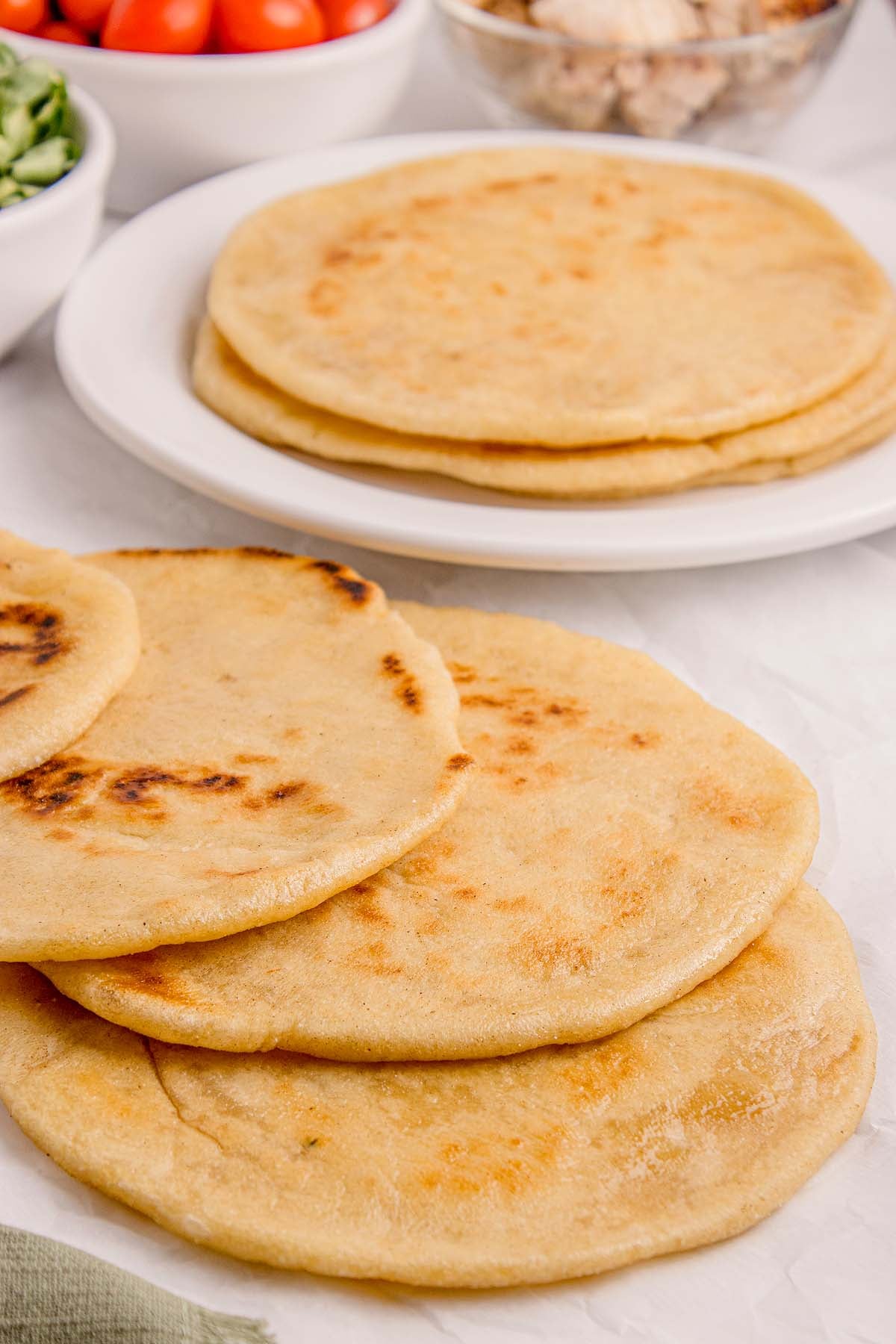 Gluten free option: Use a high quality 1:1 gluten free flour blend with xanthan gum and roll slightly thinner. The pockets may be smaller but the bread will still be tasty.