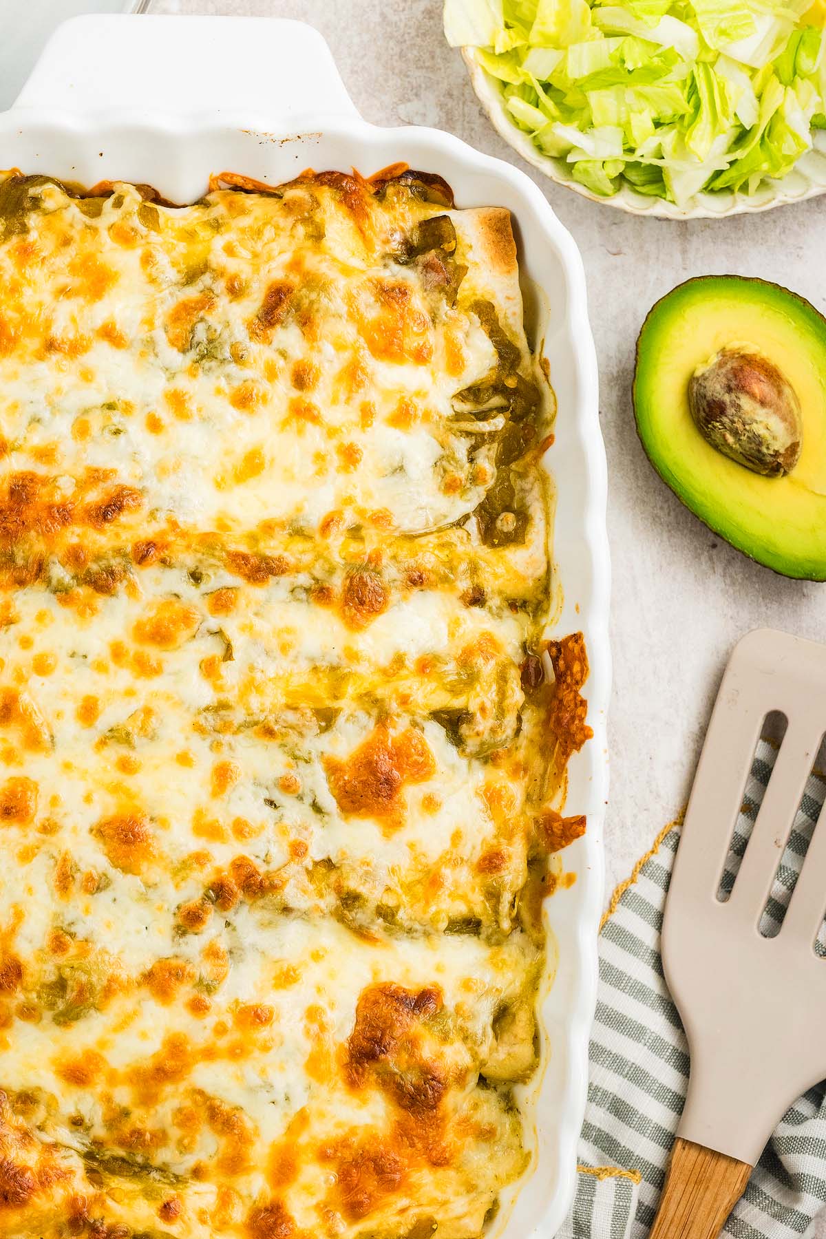 Zesty flavor: Green enchilada sauce and lime keep each bite fresh and tangy.