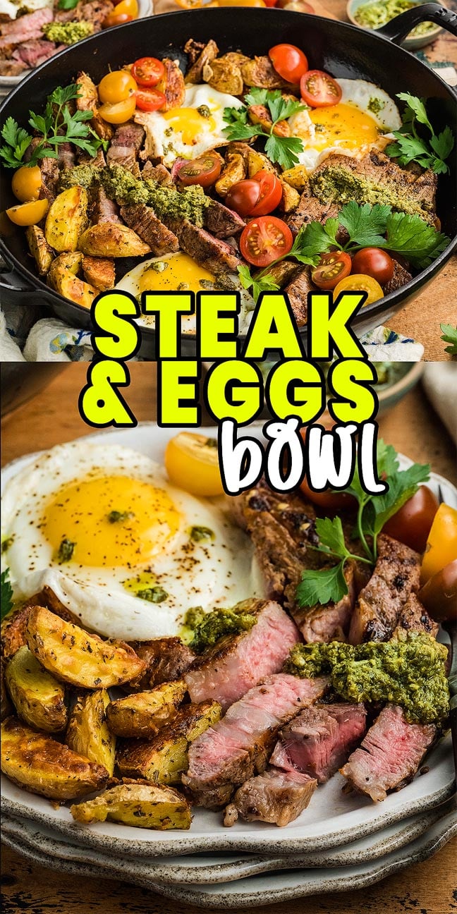 Steak and eggs combines seared steak, buttery eggs and crispy Parmesan potatoes for a rich and satisfying breakfast or brunch packed with comfort and flavor.